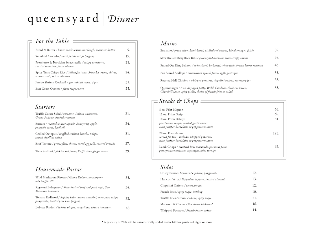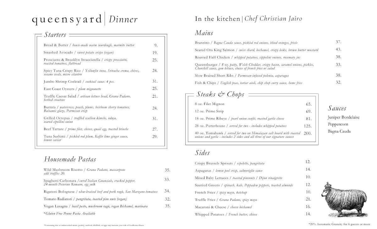 Whether you're stopping by for brunch, lunch, or dinner, Queensyard promises a culinary journey you won’t soon forget. So if you find yourself in New York City, make sure to visit this charming eatery and enjoy all the flavors and sights that it has to offer—we guarantee you’ll leave with a satisfied appetite and a smile.